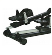 In addition to crank's position, another focus of attention is elliptical cross trainers' pedals. Pedals are the structure guiding feet to exercise along in elliptical route, as well as determining angles of ankles, and are mostly fixed to movable levers creating elliptical routes. According to different structural designs of elliptical cross trainers, pedals sometimes have to operate in sync with gliding, floating, or other mechanisms, to achieve necessary functions or to boost comfort for users. Pedals of some kinds of elliptical cross trainers are positioned at the end of movable levers, in a state of suspension, cutting down space occupied by the machines and somewhat broadening the range of pedal angles. |