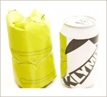 Utilizing a framework structure and ergonomic design, this inflatable cushion can be folded to fit a soda, and the astonishing 258 grams of weight is at least 40% lighter than its competitors, boasting itself to be the lightest, ultimate cushion in the world. Besides blowing air into the unit with the mouth, it can also be inflated with the unique argon gas with the nozzle developed by KLYMIT for optimal insulation. (Source: www.klymit.com) |