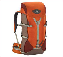 Utilizing the Proflex backpack system especially designed for mountaineers, the light-weight and ergonomic design ensure comfort, flexibility, and full range of motion during climbing, while the ultra-light, curved aluminum frames ensure stability and quick-release when necessary. The ventilation channels provide an ideal air-flow capacity. The unique ceramic printing on the bottom and the sides improves anti-abrasion. (Source: http://www.vaude.com) |