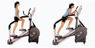 By offering five exercising positions (two of which is shown in pictures below), Summit Trainer series challenge exercisers at their lower body with stretching and strength training. The intensity of stretching and strength exercise at lower body is determined by the extent at which the exerciser leans forward - the more he/she leans forward, the more intense the exercise becomes. |